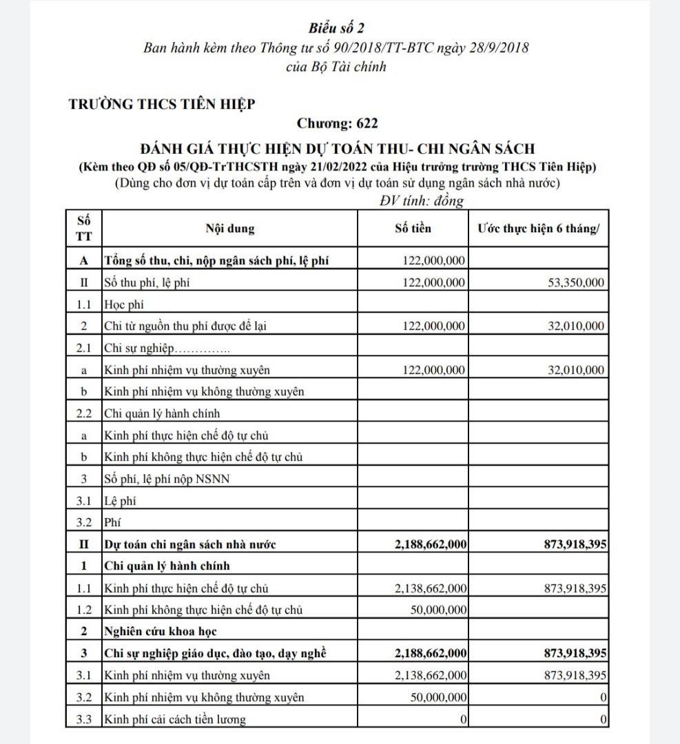 Quyết định về việc công bố, công khai dự toán Ngân sách Nhà nước năm 2026 của Trường THCS Tiên Hiệp